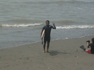 富田浜でサーフィン。案の定波はぐちゃ。濁った海の水をたらふく飲んでグロッキーになって帰ってきたMotoでした。
